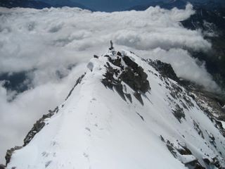 Au sommet du Dolent, vous pourez avoir un pied en France, un pied en Suisse et la tête en Italie!